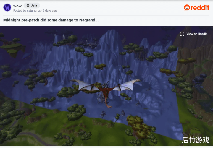 《魔兽世界》至暗之夜前夕已上线近一周,不出所料,新版本充斥各种各样的Bug。例如攻略站icy-veins就发现,原本风景如画的纳格兰山脉不知为何变成了3D打印风的灰幕,以及翱翔的巨龙突然开始成群结队地出现在东部王国的北边天空。