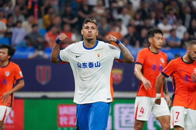 上半场补时阶段,刘军帅在禁区内手球犯规送点,克雷桑点射得手帮助山东泰山队再下一城扩大领先优势。