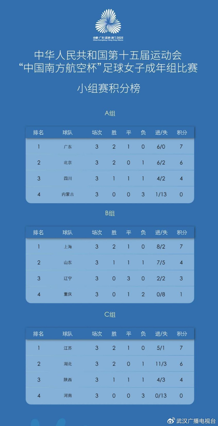 11月8日,中华人民共和国第十五届运动会足球项目女子成年组决赛阶段小组赛第三轮展开较量,湖北女足凭借多点开花的进攻表现,以7比0的大比分完胜河南队,昂首挺进八强。