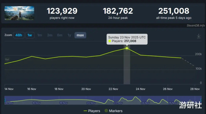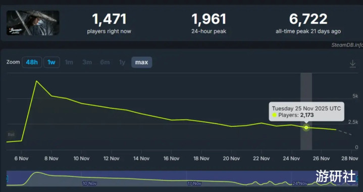《燕云十六声》在Steam上线后,最高在线超过25万,一度有望挤进2025年同时在线人数最高的游戏前十,目前依然能稳定维持在10万以上。