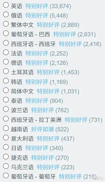 而且从Steam评论数据分布来看,其中英语玩家是绝对的大头: