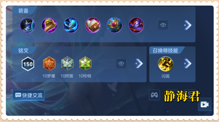 推荐铭文:梦魇×10、狩猎×10、怜悯×10。