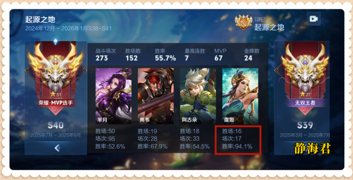 熟悉我的小伙伴都知道,我的操作非常一般,但即使这样,我还能用虞姬打出了94.1%的胜率,就光是这一点,你就知道现在的虞姬有多么强了。以我个人的使用体验来看,现在的虞姬主要强在三点: